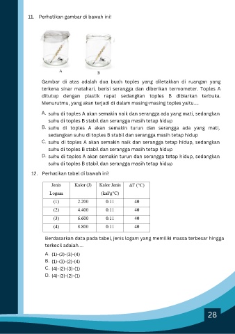 D. suhu di toples A akan semakin turun dan serangga tetap hidup, sedangkan
