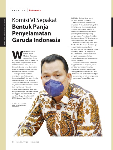 KOMISI VI • DEWAN PERWAKILAN RAKYAT REPUBLIK INDONESIA Bentuk Panja organisasi PT Garuda Indonesia, politisi