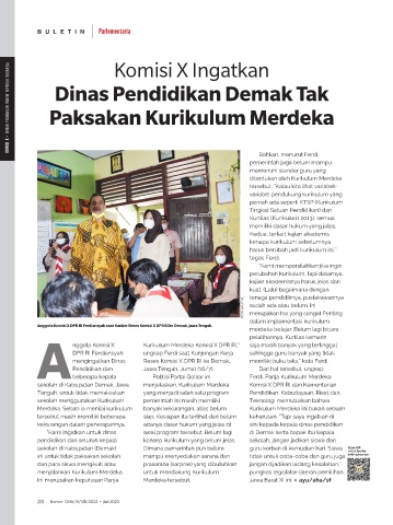 KOMISI X • DEWAN PERWAKILAN RAKYAT REPUBLIK INDONESIA Paksakan Kurikulum Merdeka
