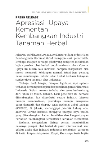 SATU TAHUN KIPRAH WAKIL KETUA DPR KORINBANG DR (HC) RACHMAT GOBEL