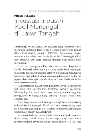 tersebut membahas investasi Industri Kecil Menengah (IKM)