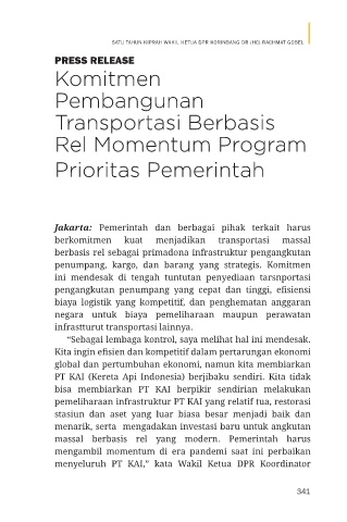 menyeluruh PT KAI,” kata Wakil Ketua DPR Koordinator