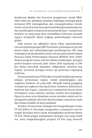 PT KAI Jeffrie N. Korompis mengatakan, manajemen saat ini