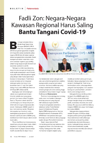 saya yakin akan lebih banyak kemajuan Ketua BKSAP DPR RI Fadli Zon dalam dialog virtual antara AIPA dan Parlemen Uni Eropa (EP). Foto: Jaka/nvl