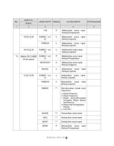 XI Bidang Pengawasan 13.00-16.00 KOMISI I s.d. L Melanjutkan acara rapat