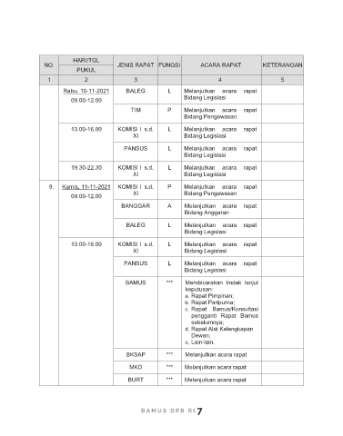 6. Senin, 8-11-2021 KOMISI I s.d. P Melanjutkan acara rapat BANGGAR A Melanjutkan acara rapat