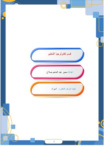 ﻗﺳم ﺗﻛﻧوﻟوﺟﯾﺎ اﻟﺗﻌﻠﯾم اﻋداد /ﺳﻣﯾر ﻋﺑد اﻟﻣﻧﻌم ﺻﻼح ﺗﺣت اﺷراف اﻟدﻛﺗور /اﺳراء z112 1