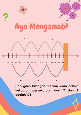 Ayo Mengamati! Dari garis bilangan menunjukkan bahwa kelipatan persekutuan dari 7 dan 9 adalah 126