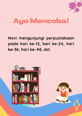 Ayo Mencoba! Novi mengunjungi perpustakaan pada hari ke-12, hari ke-24, hari ke-36, hari ke-48, dst