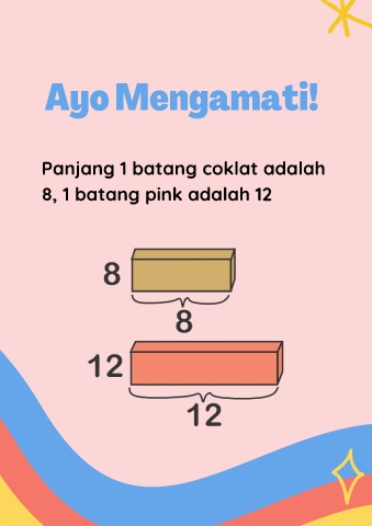Ayo Mengamati! Panjang 1 batang coklat adalah 8, 1 batang pink adalah 12