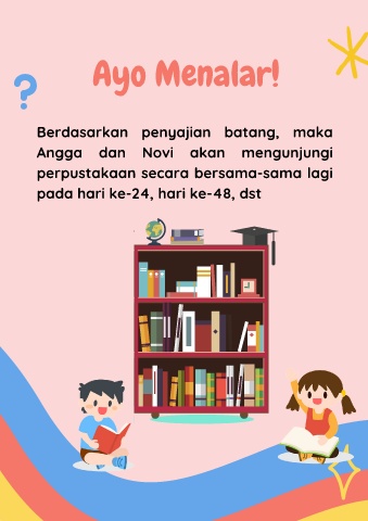 Ayo Menalar! Berdasarkan penyajian batang, maka Angga dan Novi akan mengunjungi perpustakaan secara bersama-sama lagi pada hari ke-24, hari ke-48, dst