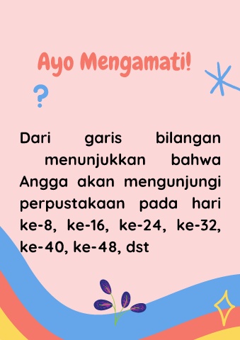 Ayo Mengamati! Dari garis bilangan menunjukkan bahwa Angga akan mengunjungi perpustakaan pada hari ke-8, ke-16, ke-24, ke-32, ke-40, ke-48, dst