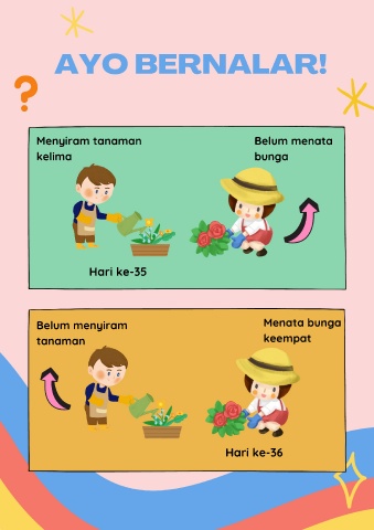 AYO BERNALAR! Menyiram tanaman Belum menata kelima bunga Hari ke-35 Belum menyiram Menata bunga tanaman keempat Hari ke-36
