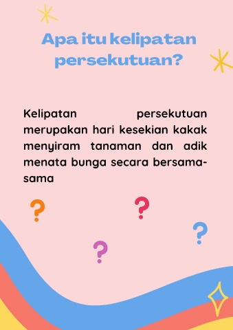 Apa itu kelipatan persekutuan? Kelipatan persekutuan merupakan hari kesekian kakak menyiram tanaman dan adik menata bunga secara bersama- sama