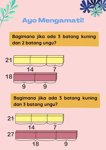 Ayo Mengamati! Bagimana jika ada 3 batang kuning dan 2 batang ungu? Bagimana jika ada 3 batang kuning dan 3 batang ungu?