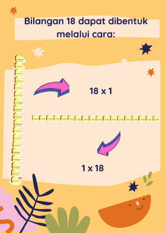 Bilangan 18 dapat dibentuk melalui cara: 18 x 1 1 x 18