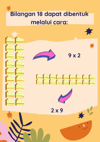 Bilangan 18 dapat dibentuk melalui cara: 9 x 2 2 x 9