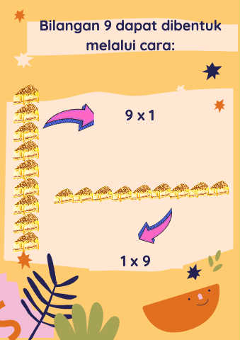 Bilangan 9 dapat dibentuk melalui cara: 9 x 1 1 x 9