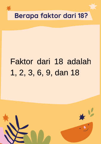 Berapa faktor dari 18? Faktor dari 18 adalah 1, 2, 3, 6, 9, dan 18
