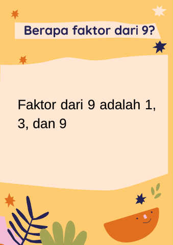 Berapa faktor dari 9? Faktor dari 9 adalah 1, 3, dan 9