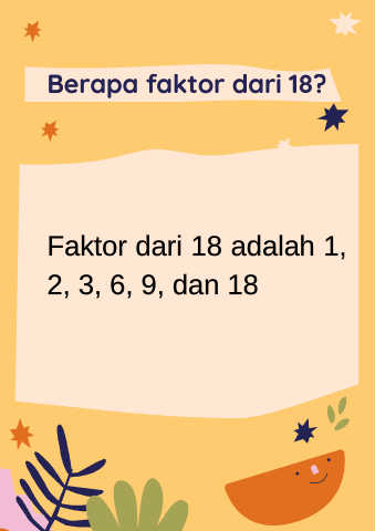 Berapa faktor dari 18? Faktor dari 18 adalah 1, 2, 3, 6, 9, dan 18