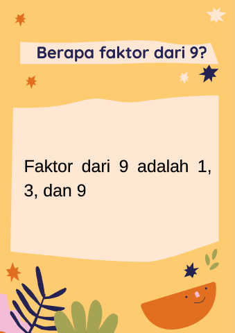 Berapa faktor dari 9? Faktor dari 9 adalah 1, 3, dan 9