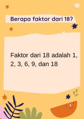 Berapa faktor dari 18? Faktor dari 18 adalah 1, 2, 3, 6, 9, dan 18