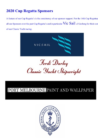 all our Sponsors over the past Cup Regatta’s and in particular Vic Sail of Geelong for their continuing generous support