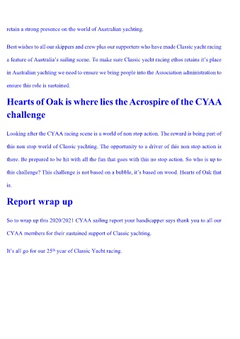 a feature of Australia’s sailing scene. To make sure Classic yacht racing ethos retains it’s place