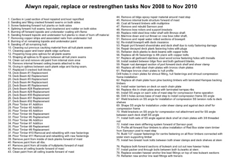 7. Removing copper strips and associated nails from underwater hull 51. Remove and repair water rotted sections of bowsprit