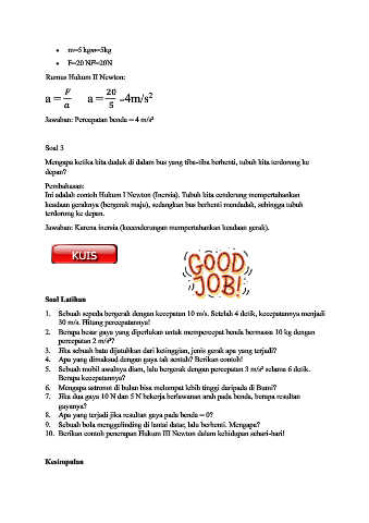 2. Berapa besar gaya yang diperlukan untuk mempercepat benda bermassa 10 kg dengan