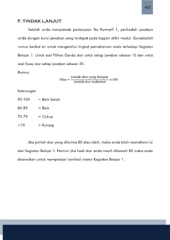 Jika jumlah skor yang diterima 80 atau lebih, maka anda telah memahami isi