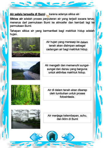 Air selalu tersedia di Bumi karena adanya siklus air.