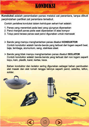 Konduksi adalah perambatan panas melalui zat perantara, tanpa diikuti