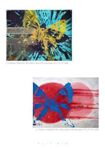 2-2 Dream of Butterfly | silk-screen, media on korean paper | 24 x 19 cm | 2008 2-3 Dream of Butterfly | silk-screen, media on korean paper | 24 x 19 cm | 2008 N a v i K i m