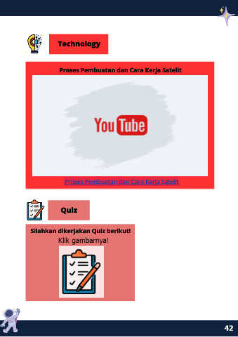 Technology Proses Pembuatan dan Cara Kerja Satelit Proses Pembuatan dan Cara Kerja Satelit Quiz Silahkan dikerjakan Quiz berikut! 41
