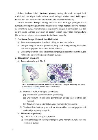 Gbr. 9 Fotomikrograf anatomi antera Musa paradisiaca - bagian melintang. (A) Antera