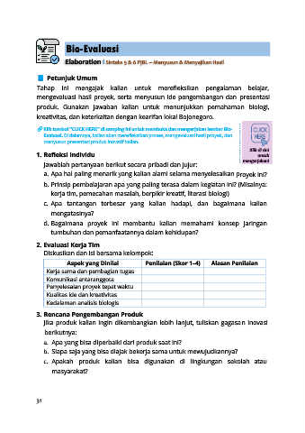 Evaluasi. Di dalamnya, kalian akan merefleksikan proses, mengevaluasi hasil proyek, dan