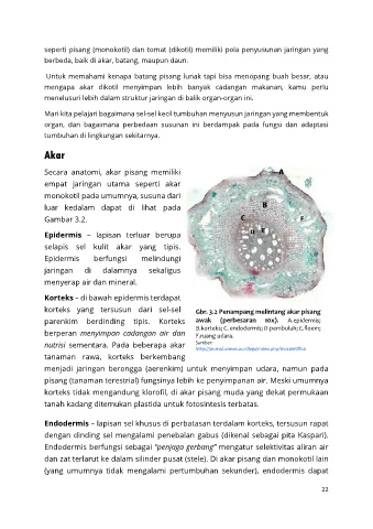 korteks tidak mengandung klorofil, di akar pisang muda yang dekat permukaan