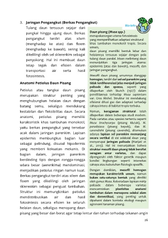 yang memberi kekuatan mekanis. Di struktur mesofil daun pisang tidak bersifat