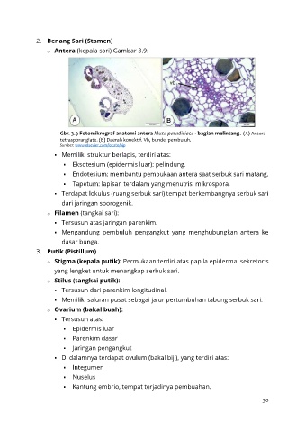 Gbr. 3.9 Fotomikrograf anatomi antera Musa paradisiaca - bagian melintang. (A) Antera