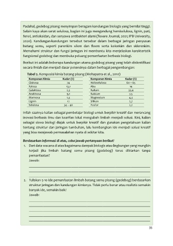 2. Tuliskan 5-10 ide pemanfaatan limbah batang semu pisang (gedebog) berdasarkan