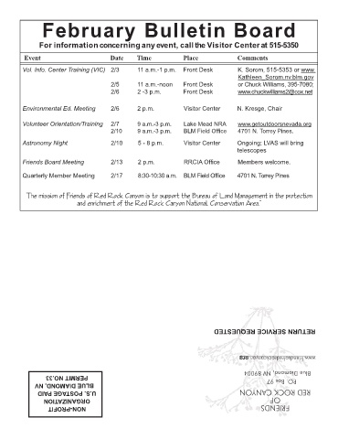 and enrichment of the Red Rock Canyon National Conservation Area.” OF FRIENDS P .O. Box 97 Blue Diamond, NV 89004 RED ROCK CANYON RETURN SERVICE REQUESTED www.friendsofredrockcanyon.org