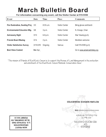 and enrichment of the Red Rock Canyon National Conservation Area.” OF FRIENDS P .O. Box 97 RED ROCK CANYON Blue Diamond, NV 89004 RETURN SERVICE REQUESTED www.friendsofredrockcanyon.org