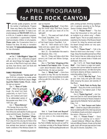 camel and bird tracks. Mod/Stren., 3.3 mi. – April should have a nice show of wildflow- the canyon. Strenuous, 6-7 mi.