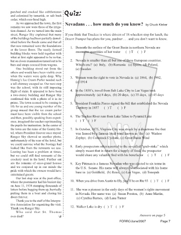 As we approached the town, the first Nevadans . . . how much do you know? by Chuck Kleber