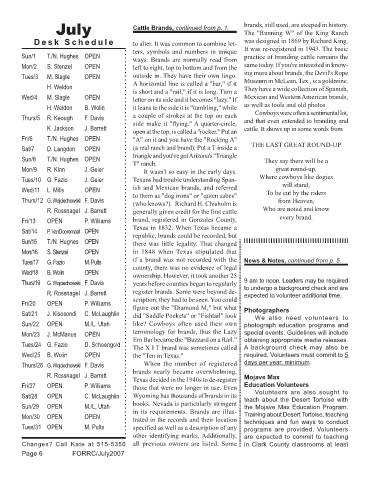 July Cattle Brands, continued from p. 1. brands, still used, are steeped in history.