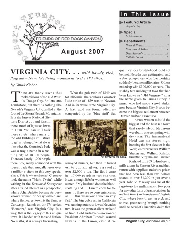 No matter, it is always fascinating. Nevada in the Union, even if the Virginia City, continued on p.6