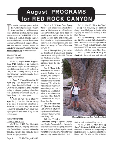 Wed. 1; Tues. 14 & 21, “Tort Talks” (Visi- ton’s Fletcher Canyon with Bob. It’s noted for Fri. 17, 24 and 31, “Red Rock Up