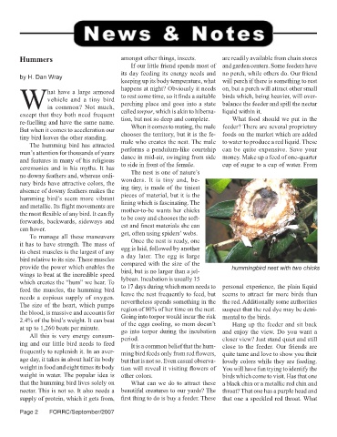 ing and our little bird needs to feed It is a common belief that the hum- close to the feeder. Our friends are
